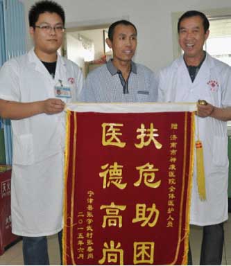 小张的病治疗了,家人心里的石头也放下了,看到小张也露出了灿烂的笑容,济南神康医院照顾小张的医护人员也很开心,真心祝愿小张以后好好打工,好好过日子,好好照顾儿子。