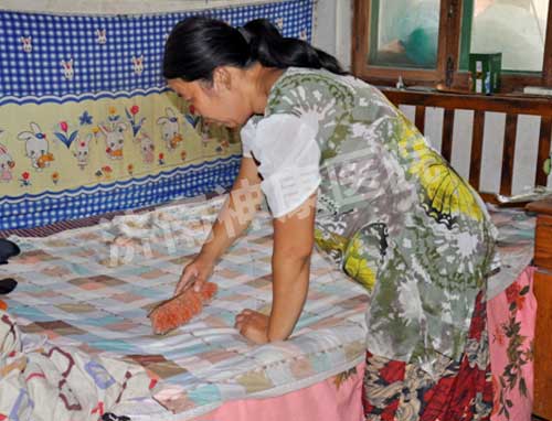 趁我们说话的时候,石女士已经在屋里手脚麻利的收拾床铺,整理收拾头发了。石女士不好意思的说,最近几天忙着收拾房子,家里也没时间收拾,太乱了。